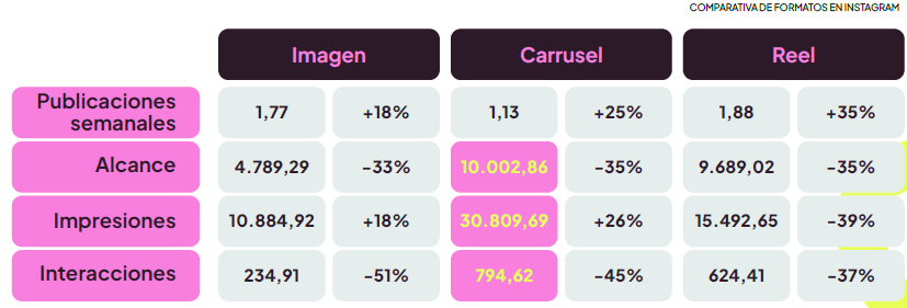 Tot i que el vídeo curt és el format estrella a les xarxes socials, no es pot passar per alt el carrusel, que segueix demostrant una gran eficàcia dins del feed d’Instagram. Segons l’informe de tendències en xarxes socials 2026 de Metricool, durant el 2025 el carrusel va ser el que va generar més impressions i interaccions entre les publicacions (Reels, publicacions individuals i carrusels). Aquesta dada confirma que els usuaris consumeixen i interactuen més amb continguts que poden veure amb més tranquil·litat, especialment quan aporten valor, expliquen processos o generen curiositat.